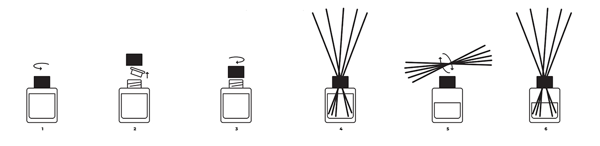- Vložte dovnitř ratanové tyčinky a užijte si vůni.
