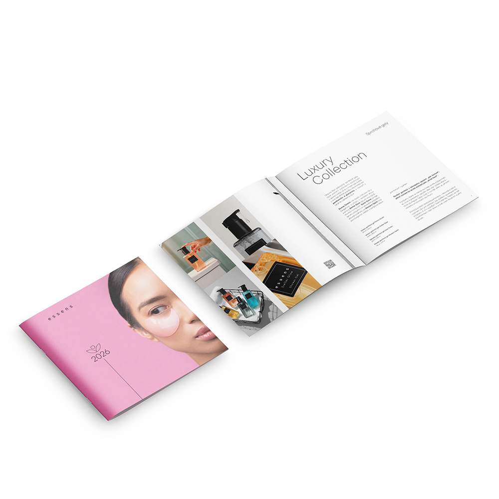 Interaktivní QR kódy vás i vaše zákazníky provedou světem jednotlivých produktových řad a pomohou s orientací v bohaté nabídce produktů ESSENS. Katalog přehledně představuje všechny benefity, které produkty ESSENS přinášejí, a usnadňuje jejich pochopení i výběr.